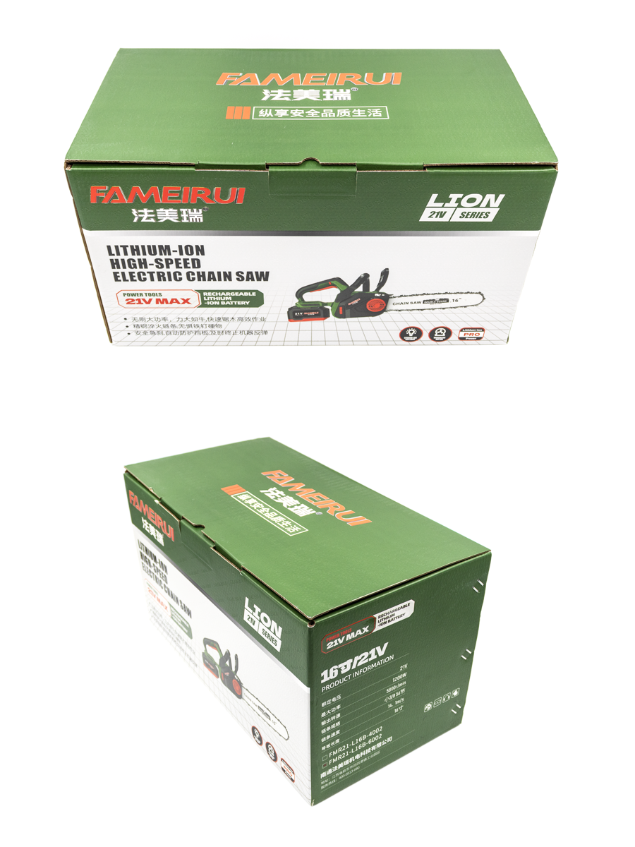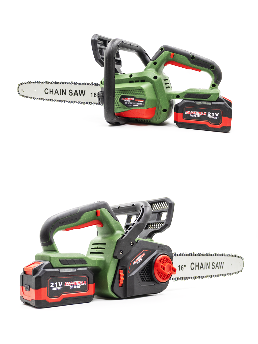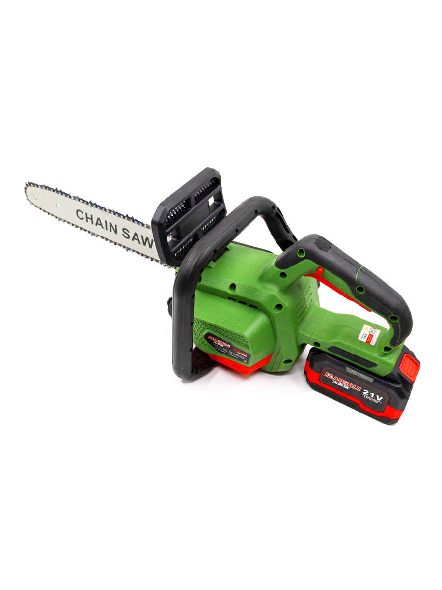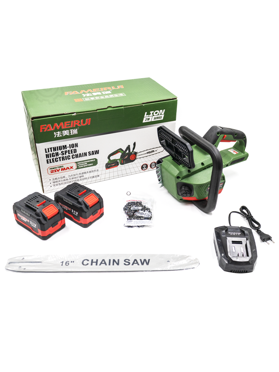 Аккумуляторная цепная пила FAMEIRUI 16″ — удобный и мобильный инструмент для работ в саду, на даче и на выезде. Пила оснащена бесщеточным двигателем, который обеспечивает стабильную тягу и повышенную эффективность. Скорость цепи до 14 м/с, а шина длиной 16″ (≈41 см) подходит для распила веток, досок и заготовки дров.