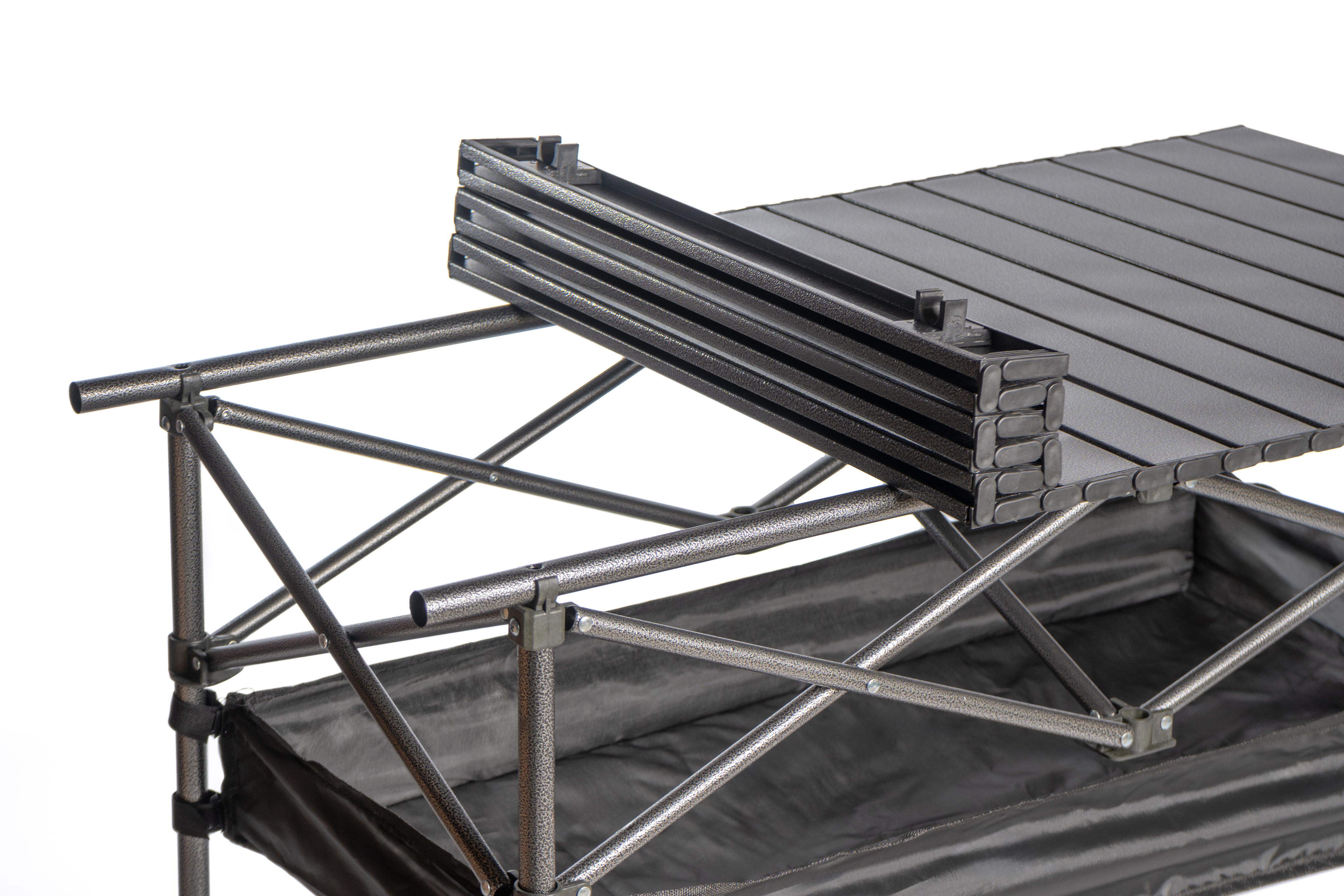 Каркас из алюминия выдерживает нагрузку до 50 кг. Двойная Х-образная конструкция позволяет равномерно нагружать разные части стола. - ФУНКЦИОНАЛЬНОСТЬ