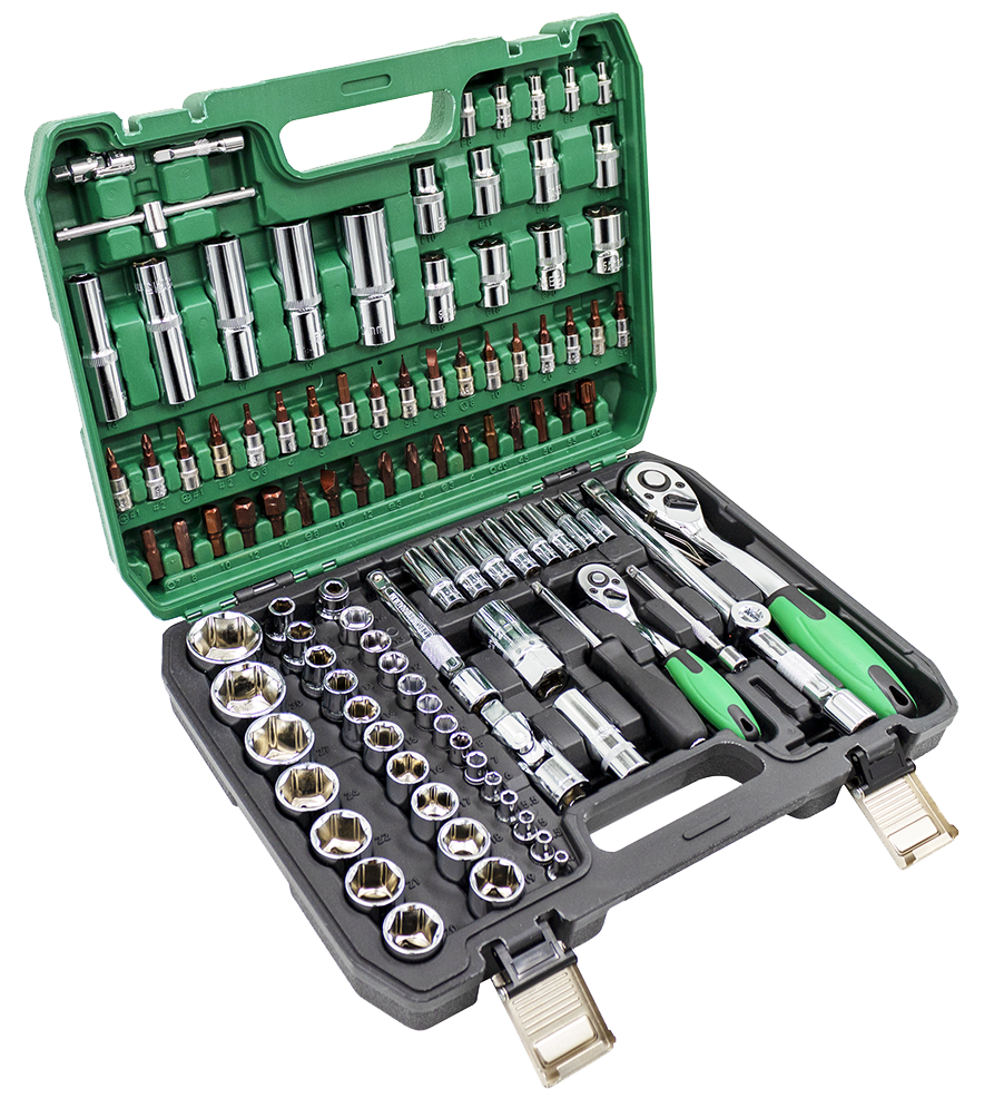 - Головки торцевые ½" (17 шт.): 10, 11, 12, 13, 14, 15, 16, 17, 18, 19, 20, 21, 22, 24, 27, 30, 32 мм