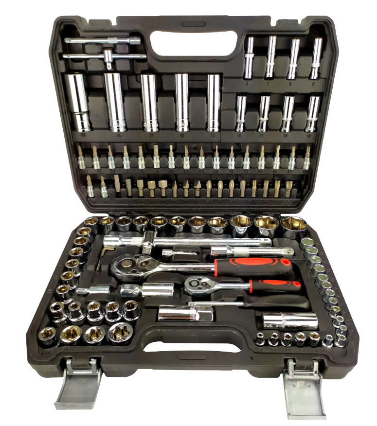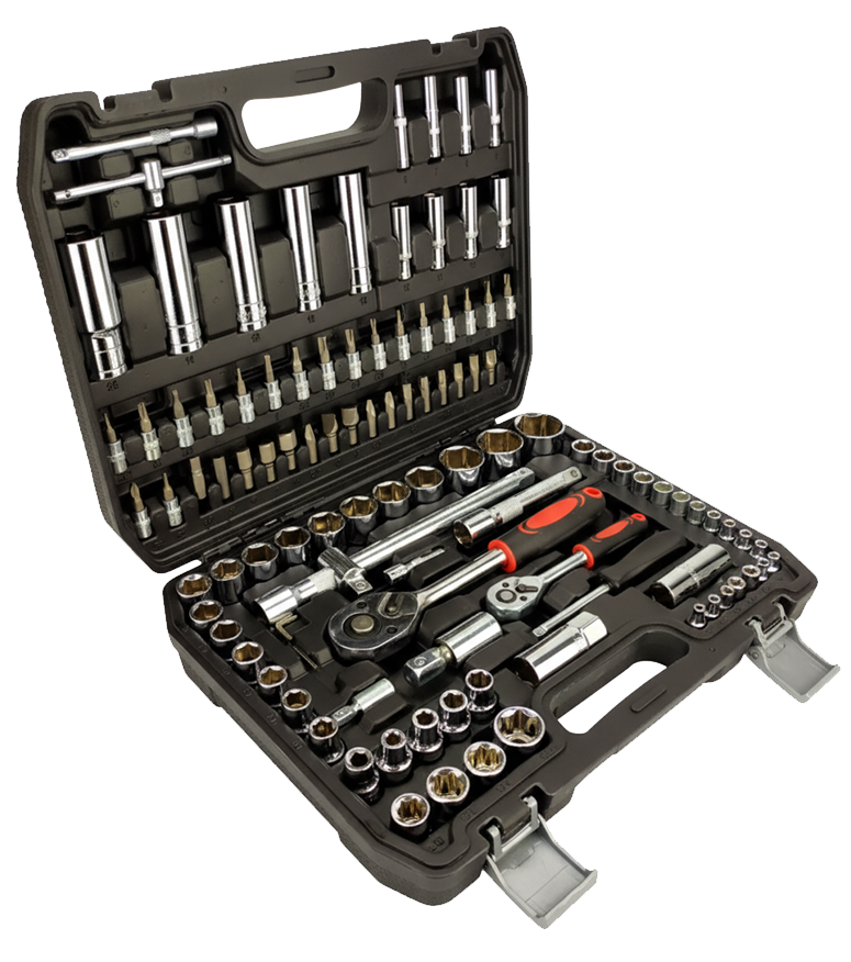 - Головки торцевые ½" (17 шт.): 10, 11, 12, 13, 14, 15, 16, 17, 18, 19, 20, 21, 22, 24, 27, 30, 32 мм
