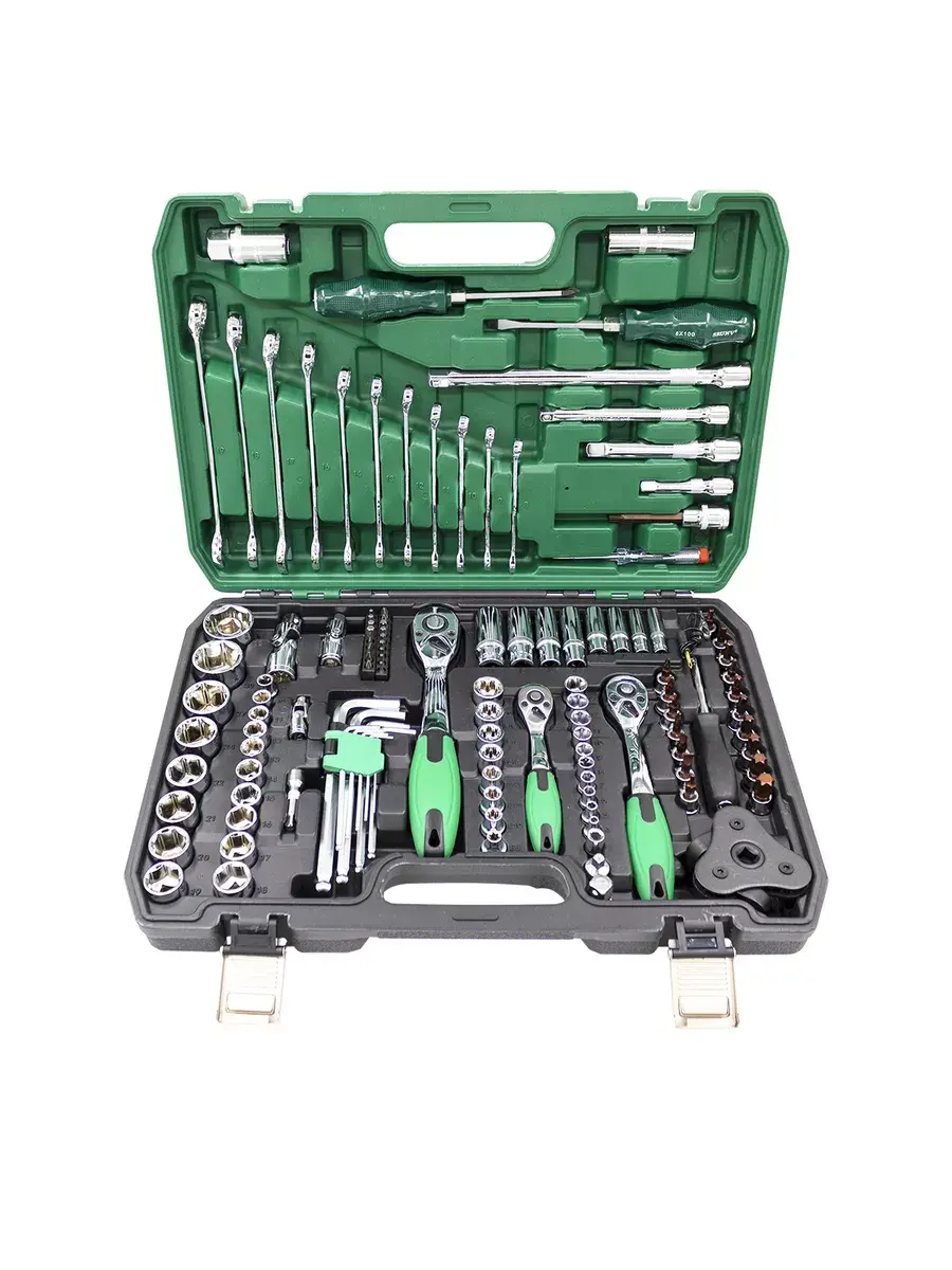 Линейка включает комплекты от компактных (94–108 предметов) до расширенных профессиональных наборов (151–172 предмета), подходящих как для автолюбителей, так и для механиков, шиномонтажных мастерских, техцентров и гаражного ремонта. Надёжность, практичность и широкий ассортимент делают эти наборы отличным выбором для тех, кто ценит качество и универсальность.