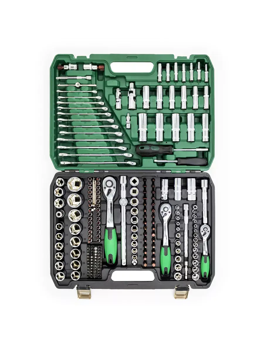 Линейка автомобильных наборов инструментов объединяет продуманные комплекты для полноценного обслуживания легковых автомобилей, внедорожников, мотоциклов и спецтехники. Каждый набор включает тщательно подобранные элементы: трещотки с мелким шагом, торцевые головки, длинные и глубокие головки, удлинители, карданные шарниры, комбинированные ключи, наборы бит и специализированные аксессуары.