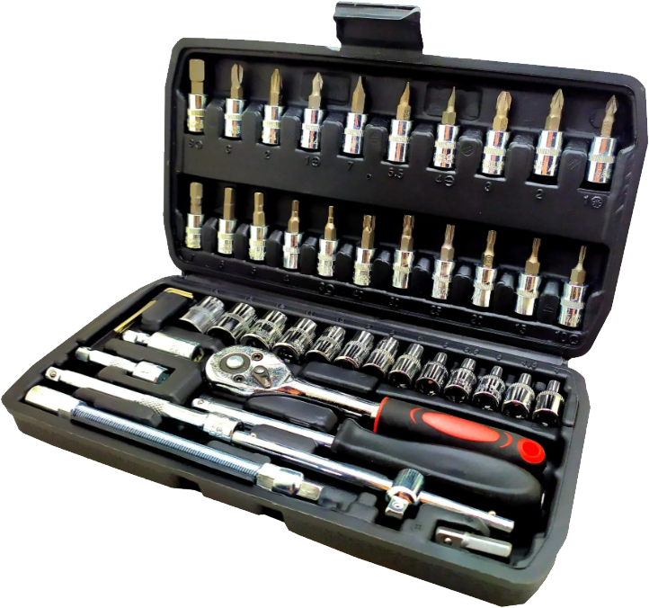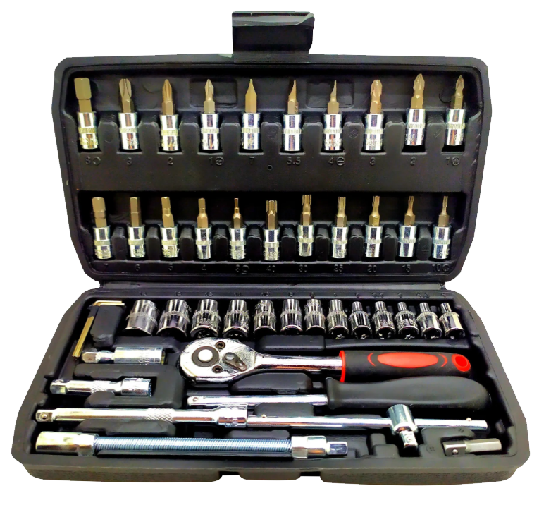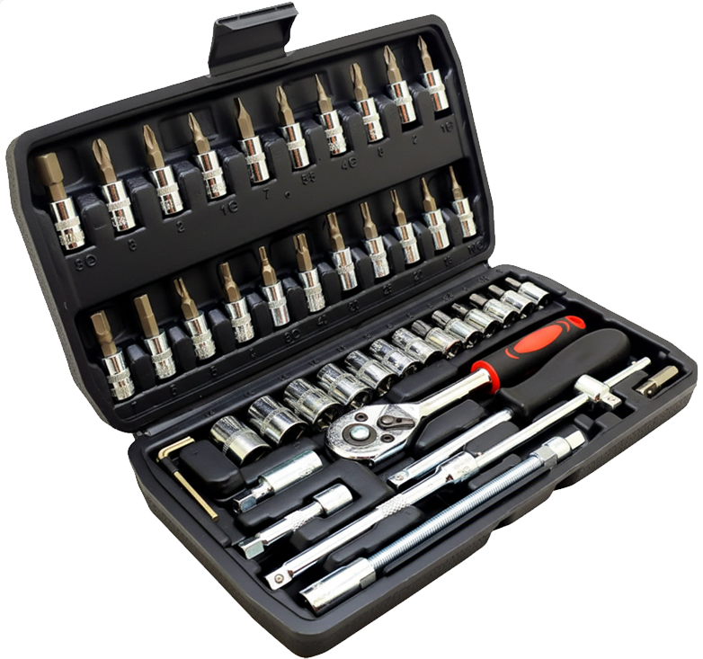 - Головки торцевые ¼" (13 шт.): 4, 4.5, 5, 5.5, 6, 7, 8, 9, 10, 11, 12, 13, 14 мм
