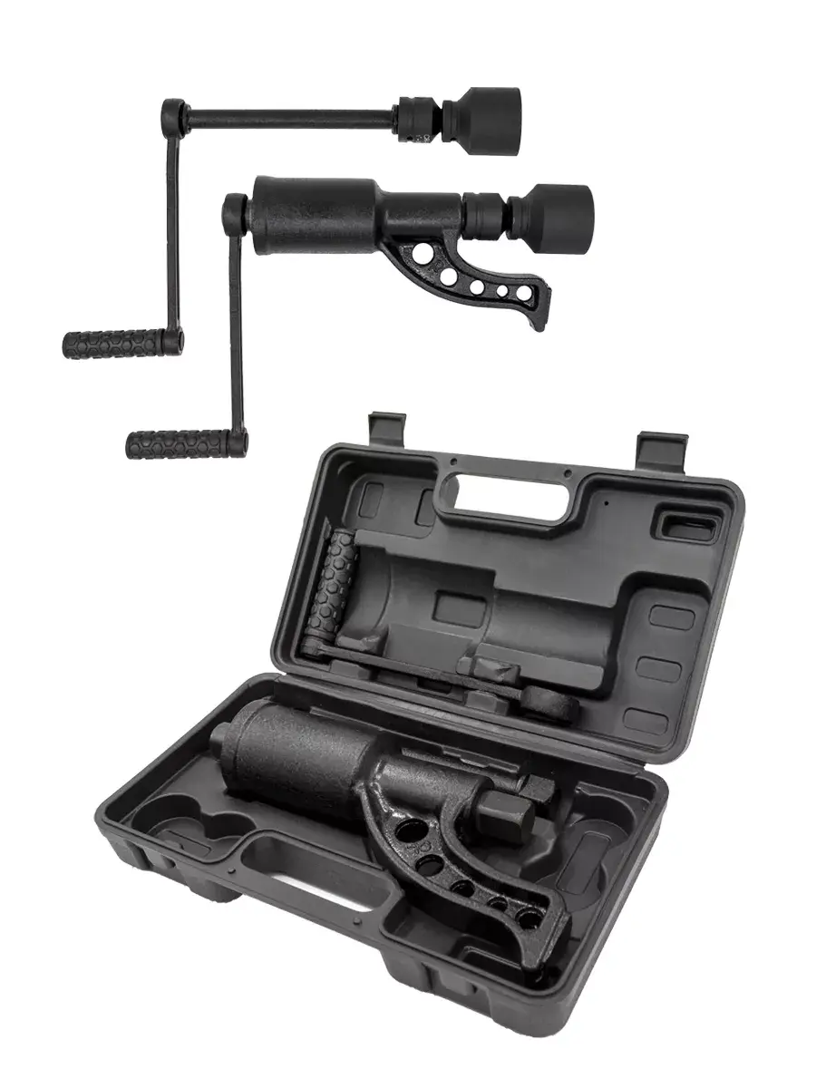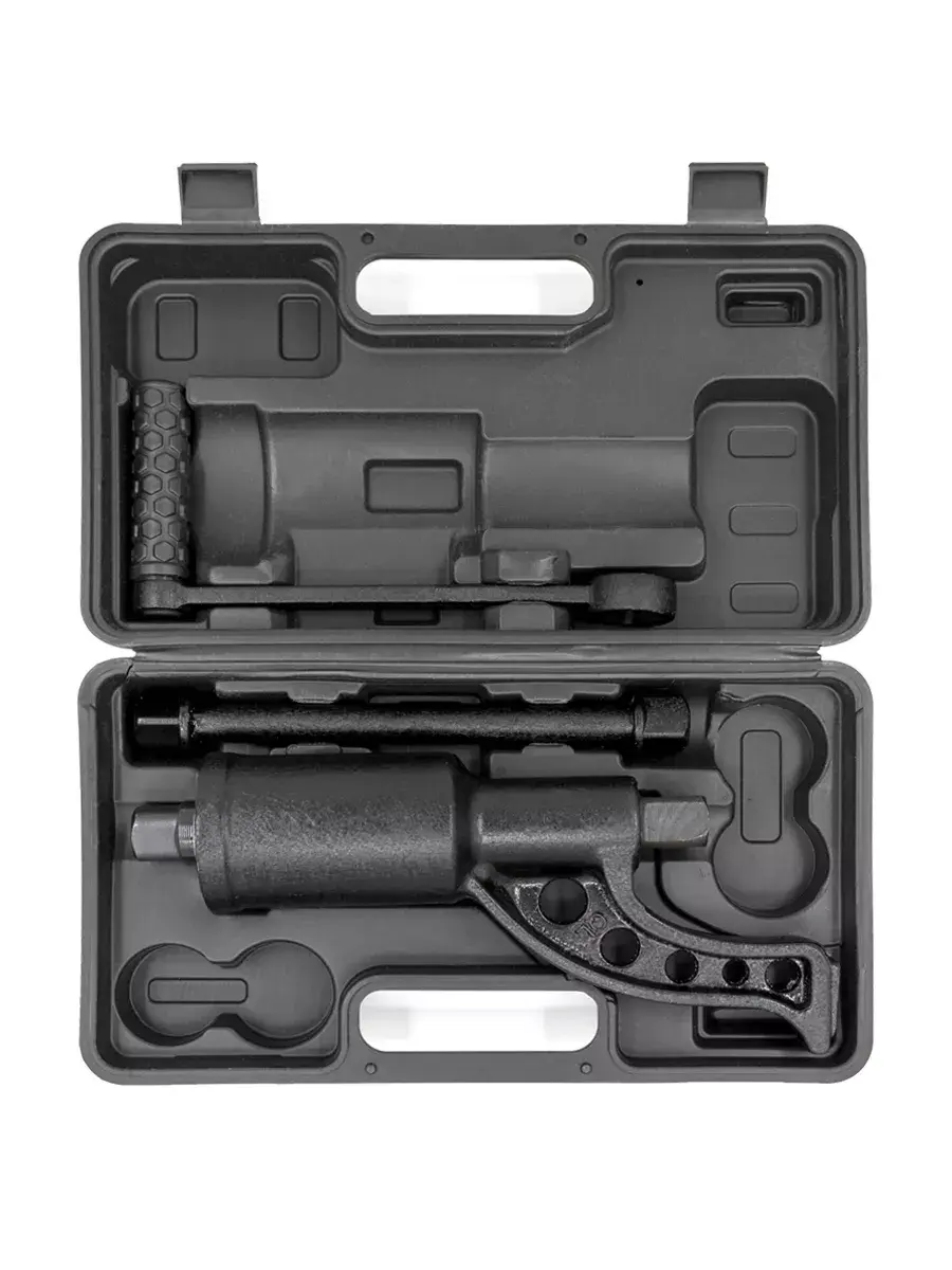 Ручной усилитель крутящего момента — это профессиональный редукторный гайковёрт, разработанный для быстрого и безопасного откручивания колесных гаек на грузовых автомобилях, автобусах, спецтехнике и прицепах. Благодаря мощному редуктору инструмент многократно увеличивает приложенное усилие, позволяя откручивать даже «прикипевшие» и ржавые гайки без применения силы.